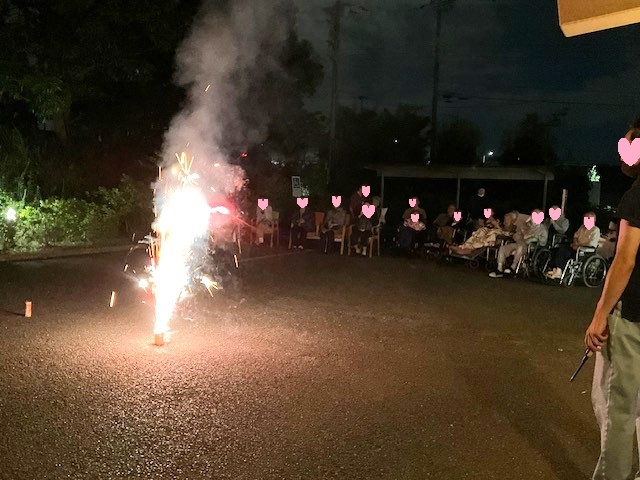 特養めぐみでは涼しくなってきたこの時期を見計らって花火大会を開催しました。