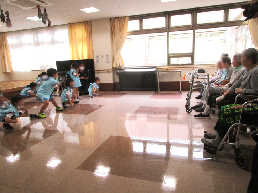 介護老人保健施設恵の杜のおじいちゃんおばあちゃんは、子どもたちが一所懸命披露する姿に満面の笑みをうかべていました。