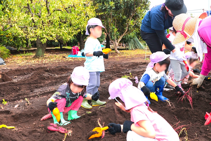 今回は3歳、4歳、5歳のお友達がお芋ほりに参加しました。