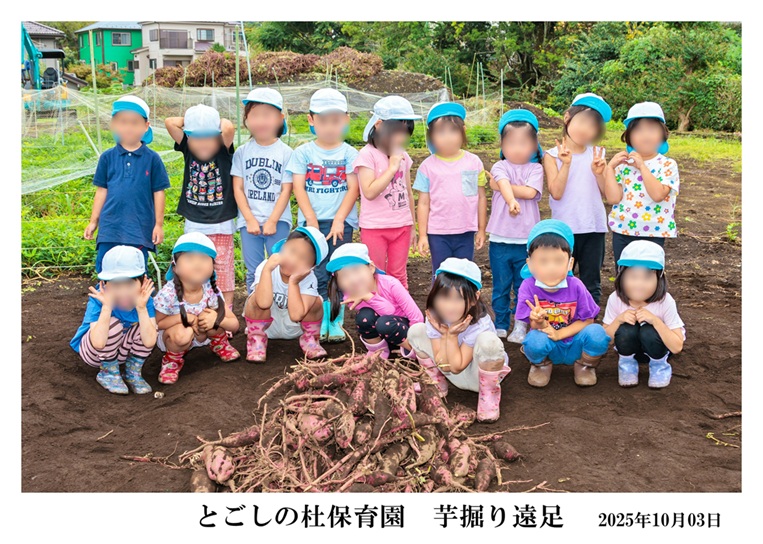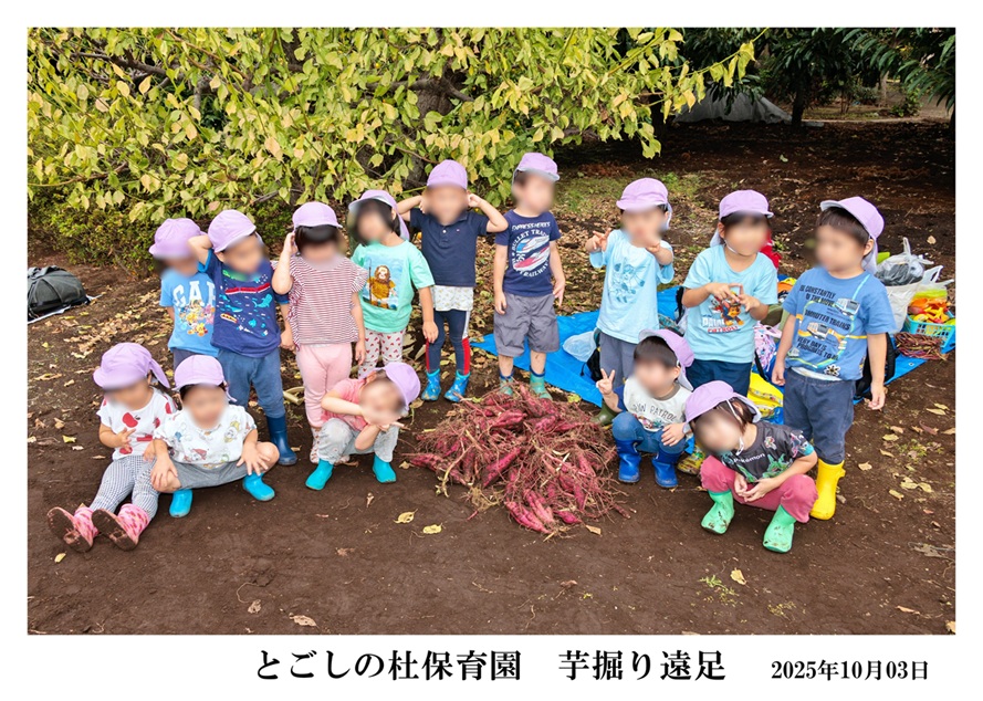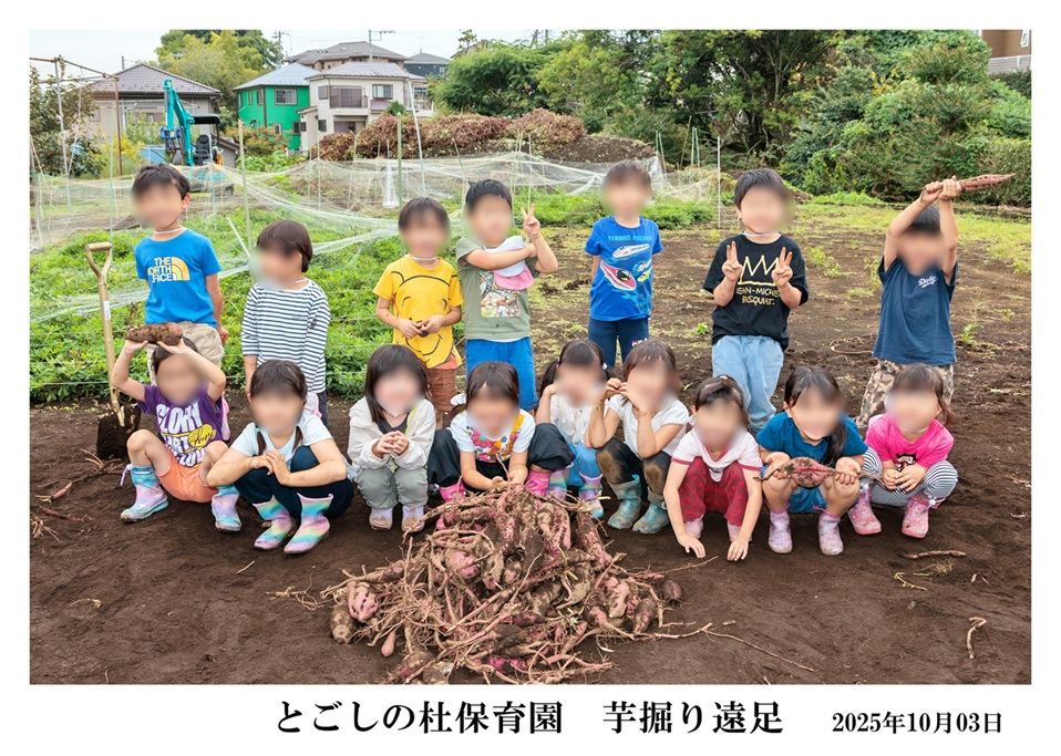 最後にみんなで収穫したお芋と一緒に集合写真。