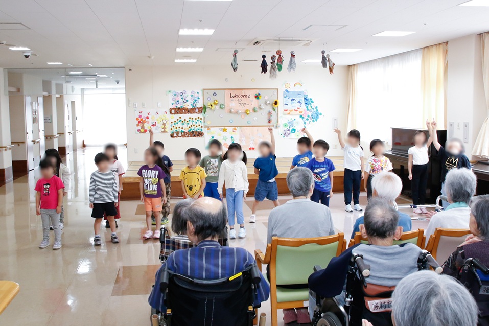 とごしの杜保育園では同一法人が運営するとうかいどう保育園のお友達と一緒に、当法人会長が育てたお芋畑で芋ほりを楽しみ、その後、同じく法人が運営する介護老人保健施設恵の杜のご利用者との交流を楽しみました。