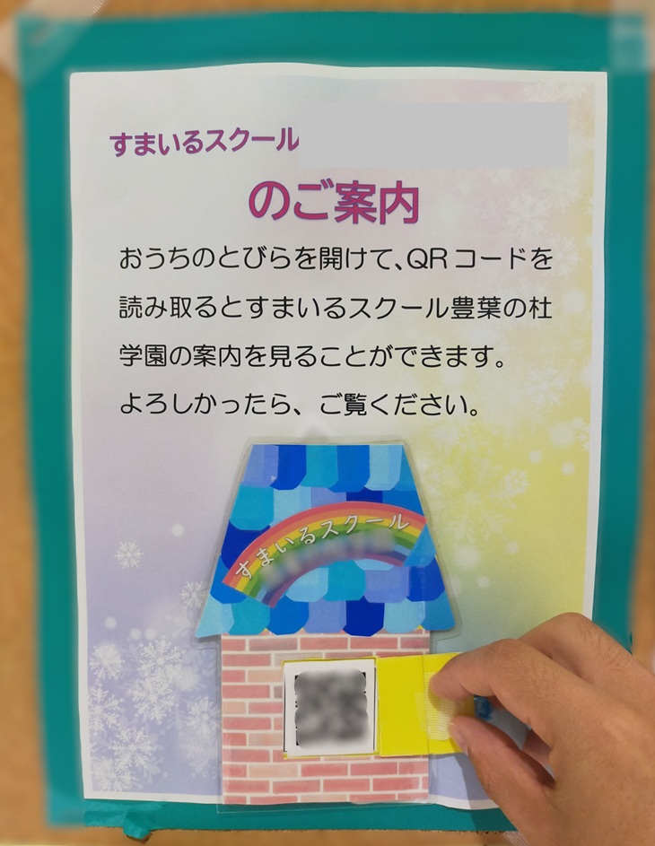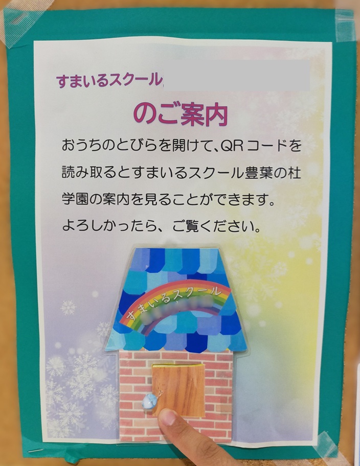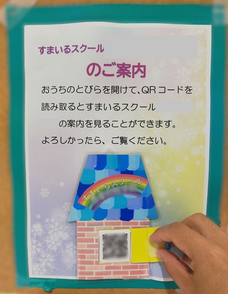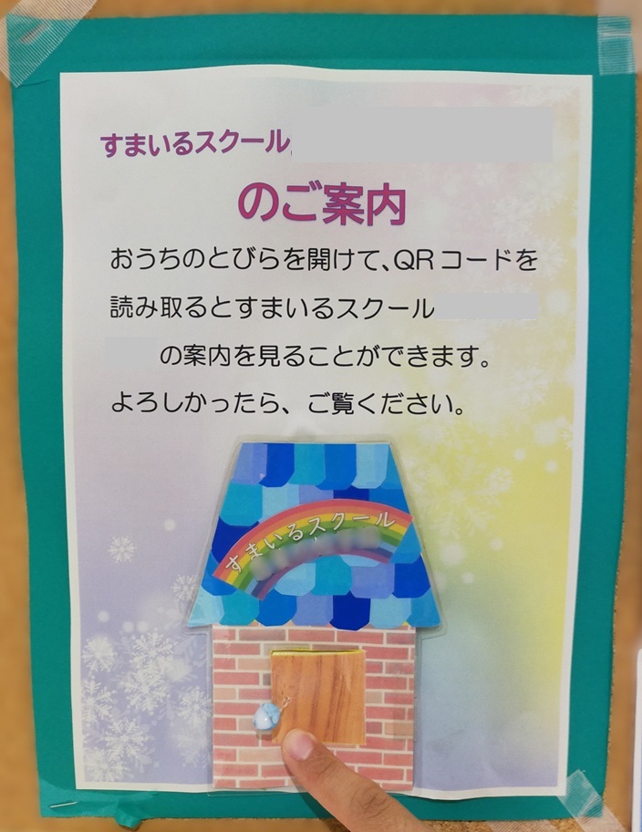 そのHPのQRコードを工夫して廊下に掲示しているすまいるスクールがありました。