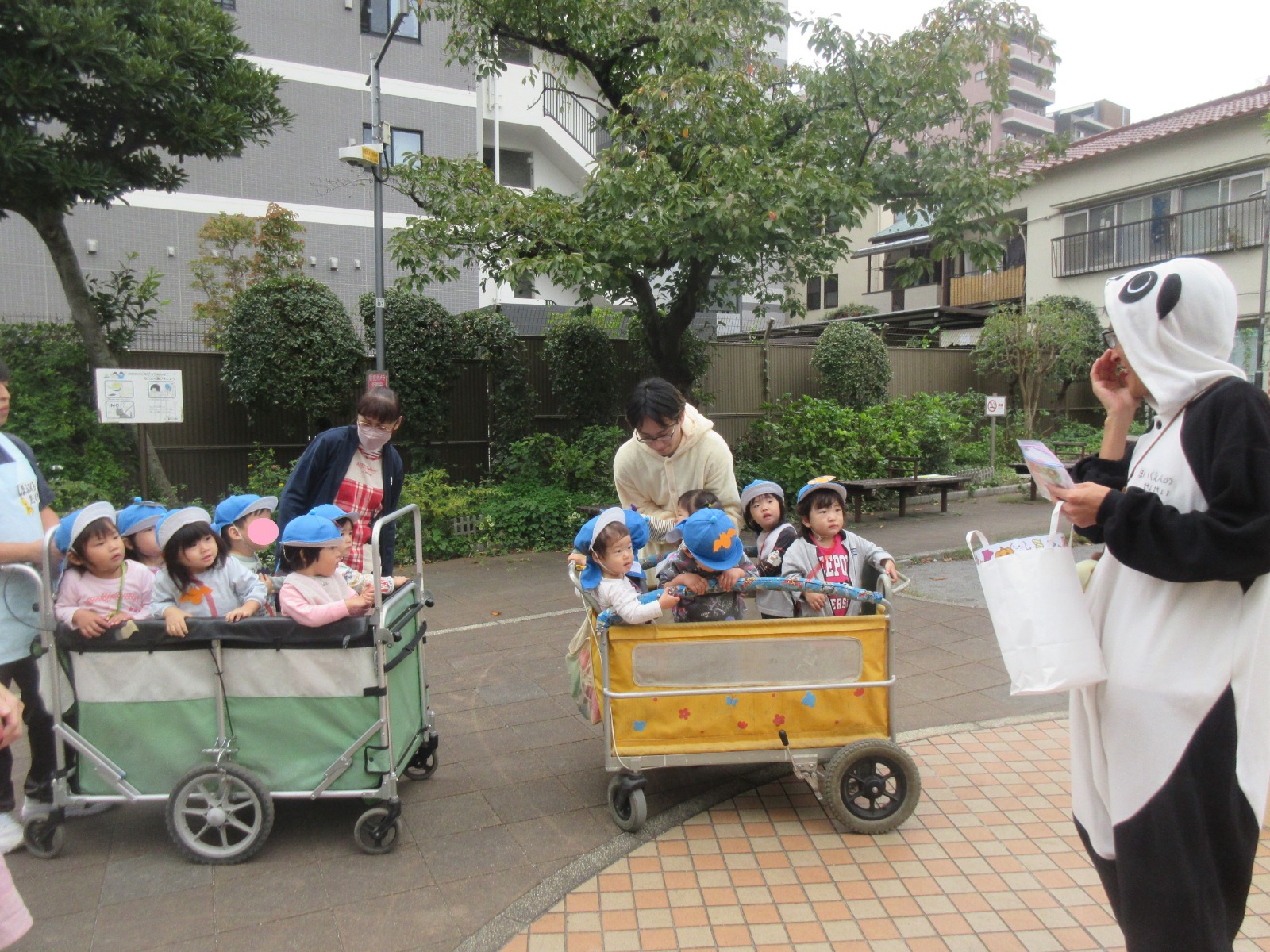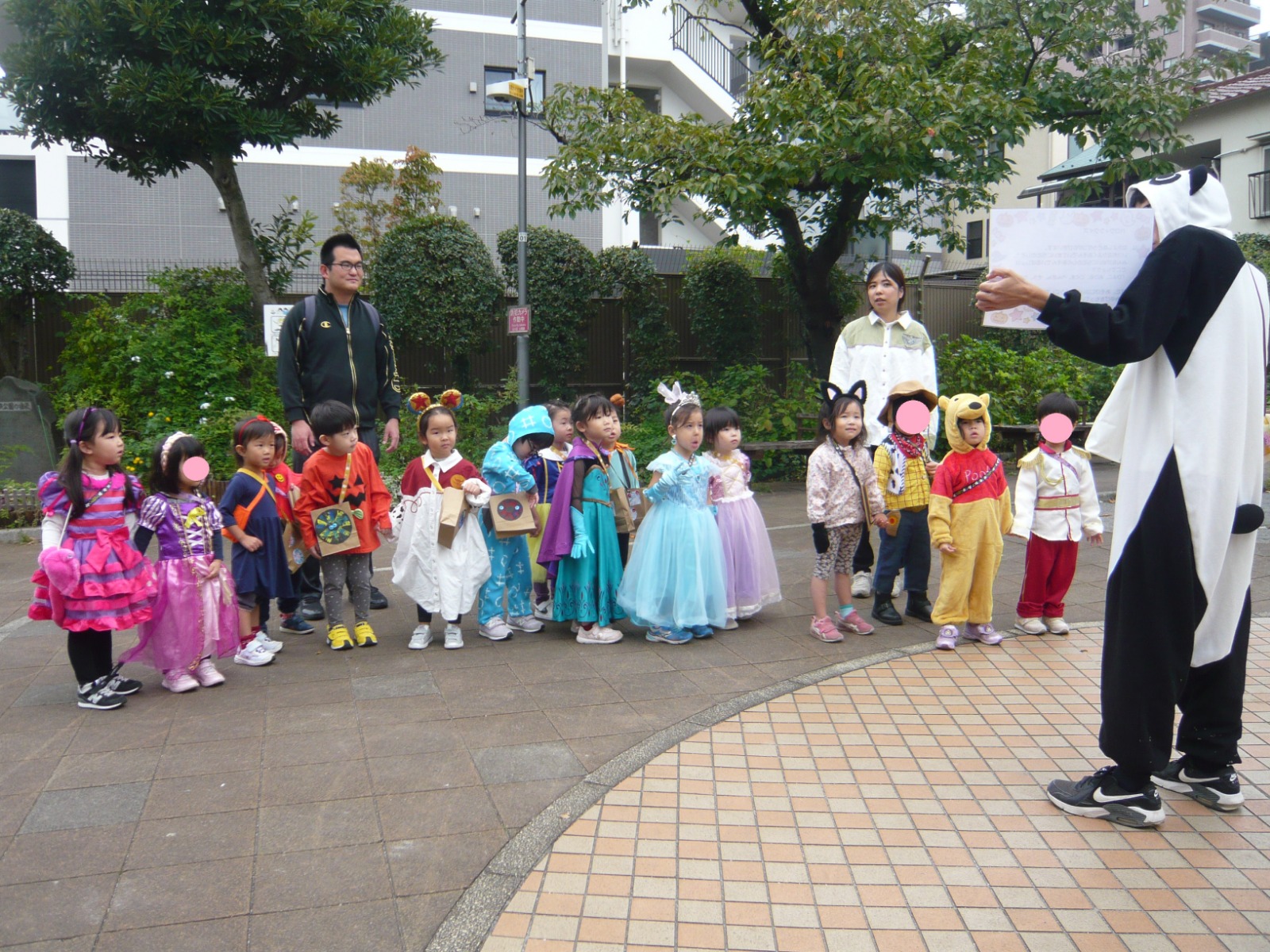 公園では、出会ったパンダさんに「トリック・オア・トリート!」と元気に言うことができました!