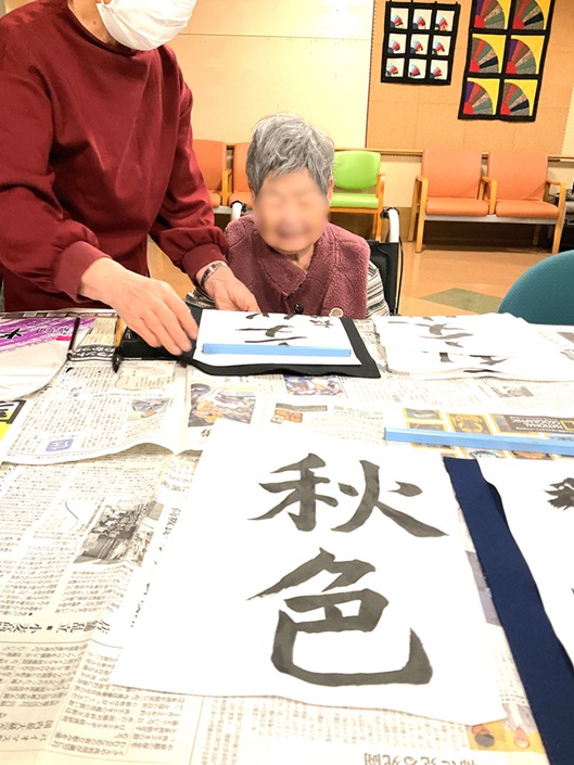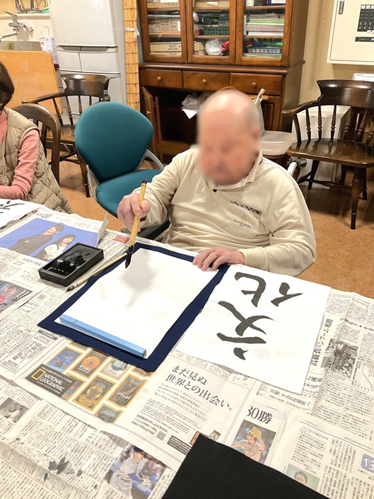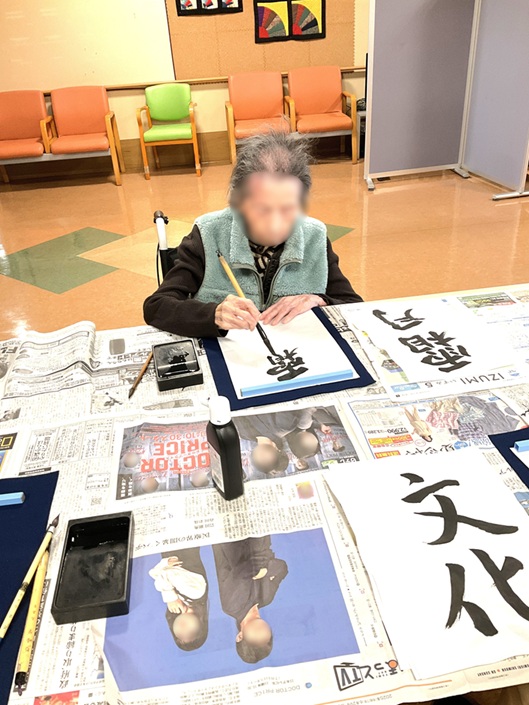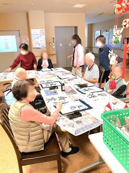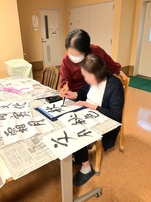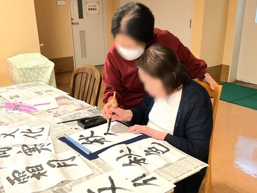 特別養護老人ホームめぐみでは定期的に習字教室を開催しています。