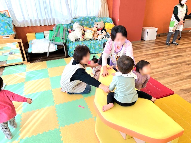 保育者が安全を確保して見守る中で、自由に動き回って楽しいひと時を過ごしていました。
