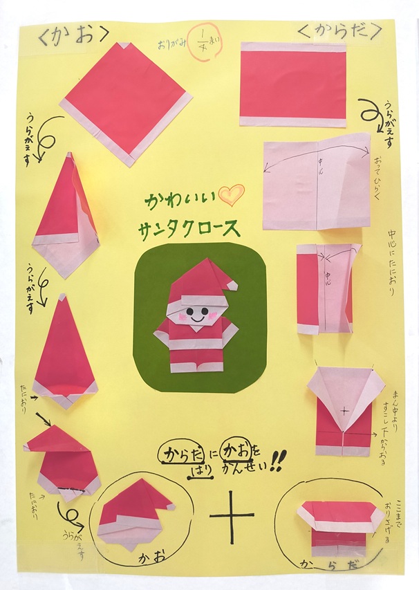 こんな風に手順を掲示すると、少し離れたところからでも見ながら折ることができます。
