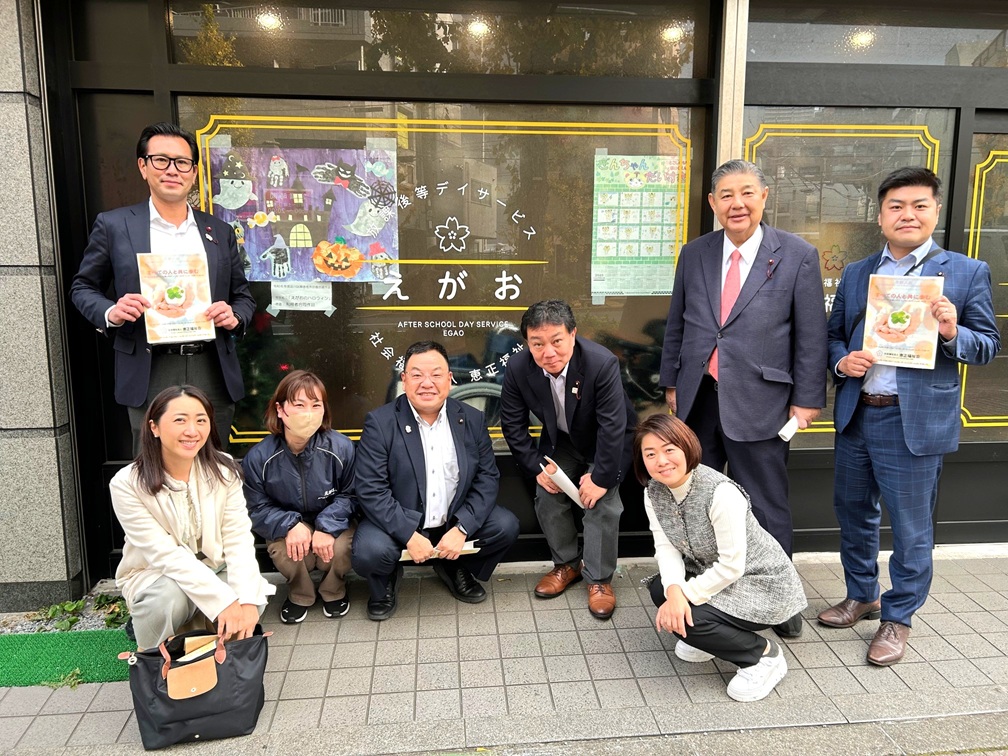 放課後等デイサービスえがおに品川区議会議員の皆様が7名来訪されました。先に開催された品川区重症心身障害児連絡会で議論されたことのご説明や、現状について報告し、質疑応答などもさせていただきました。