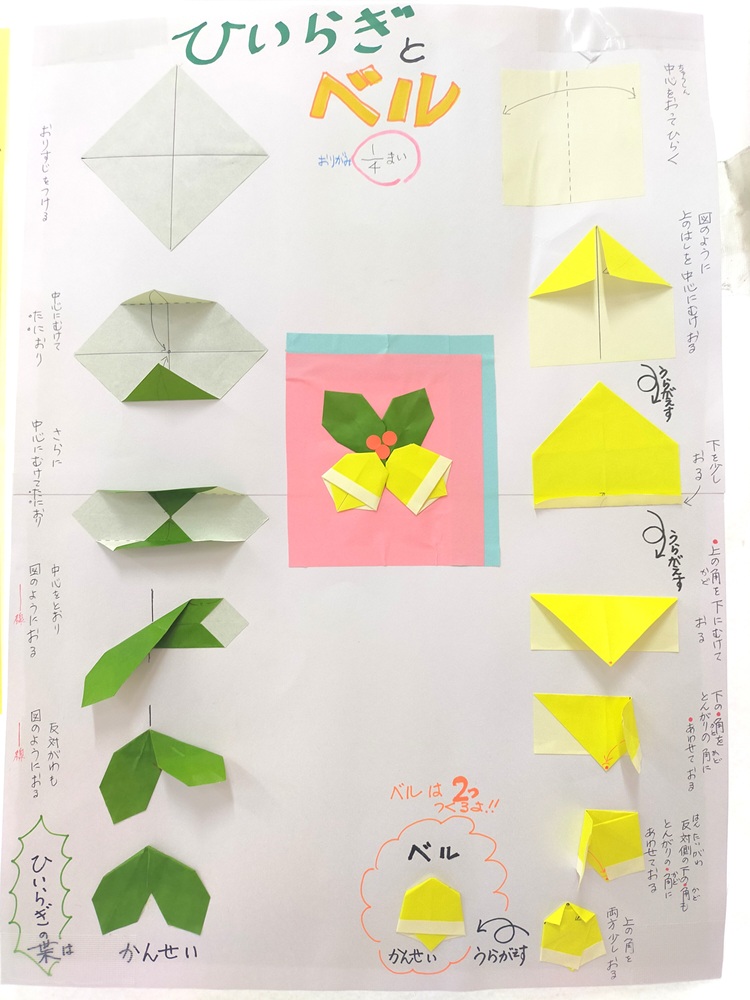 先日はサンタクロースとクリスマスツリーの作り方をお知らせしましたがクリスマス折り紙第二弾!!ということで、今回は「ひいらぎ」と「ベル」のご紹介です。