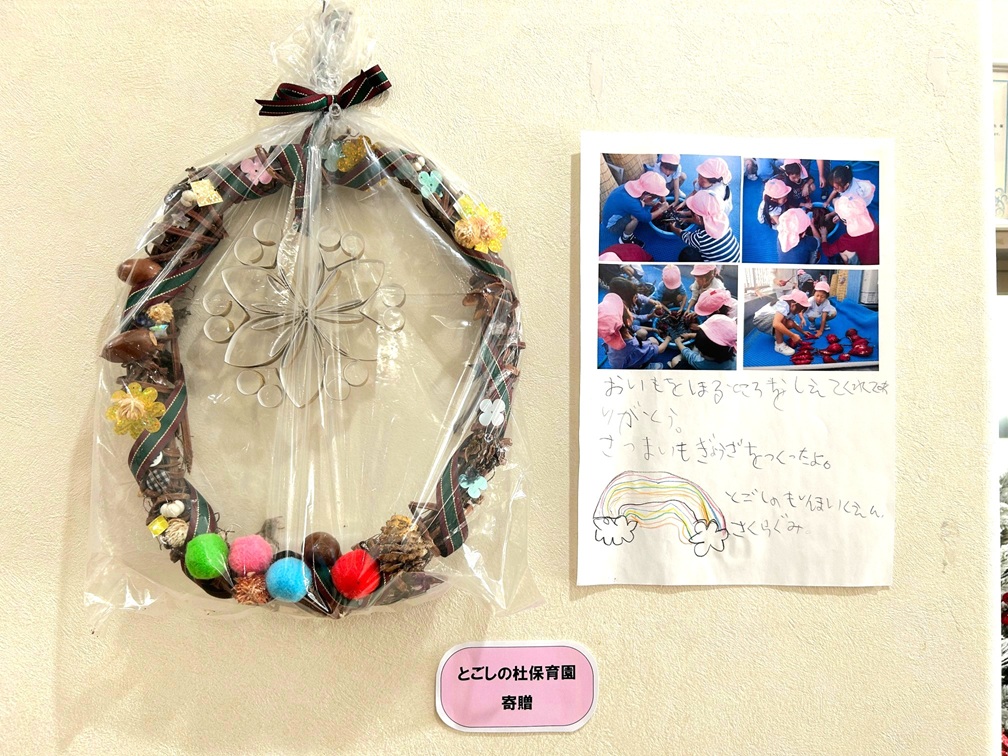 こちらはお芋ほりではないのですが、当法人が運営する放課後等デイサービスえがおからお届けいただいた作品です。
