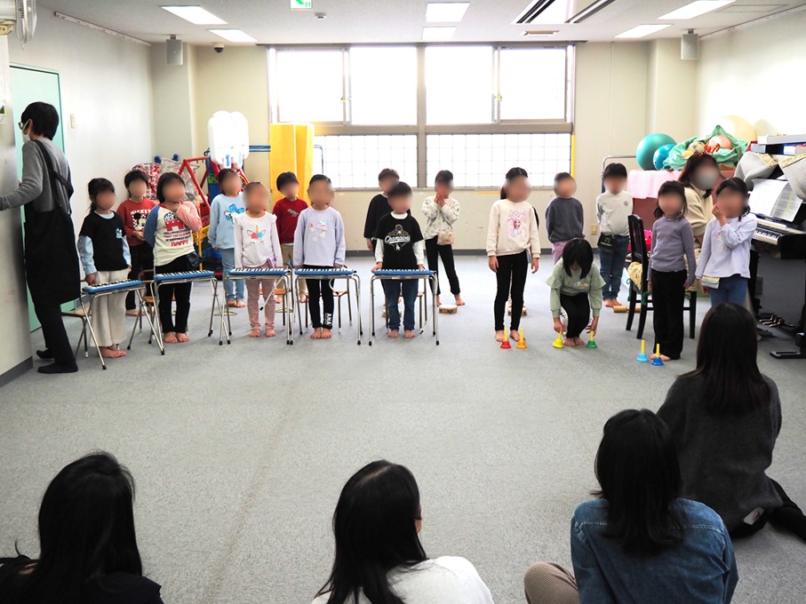カンガルー広場のお友達はお兄さんお姉さんがカッコよく演奏する姿にじっと見とれていました。