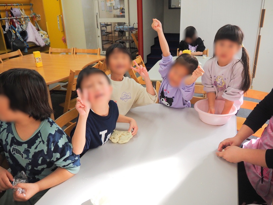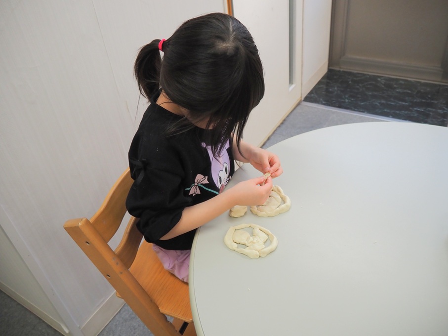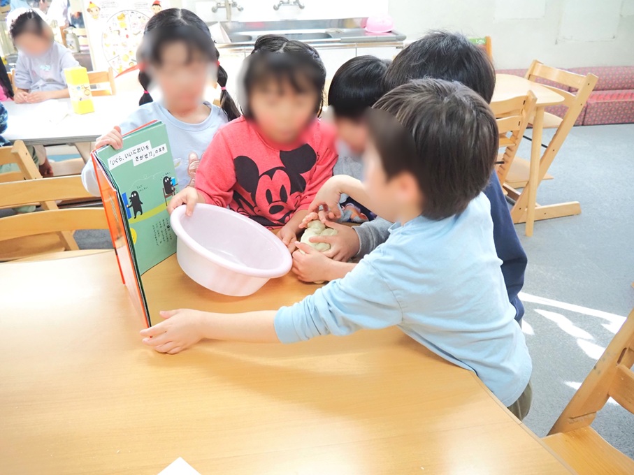 今日、とうかいどう保育園では粘土で色々な形を作っていました。