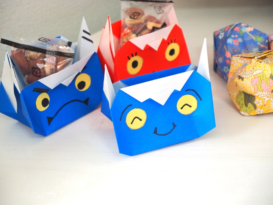 怖い鬼の顔も、折り紙でおると何となく愛着があるような気がしますね。