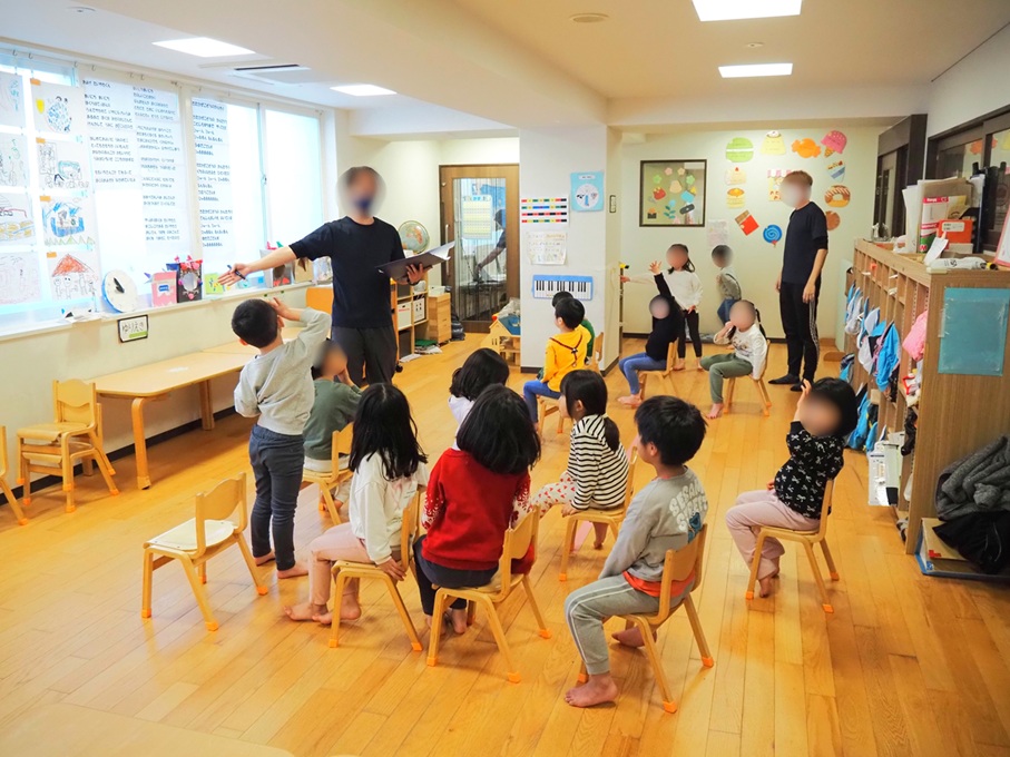 ゆり組のお友達は 学校のように椅子に座って並んでいます。