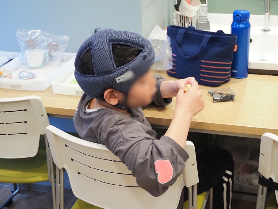 とてもお気に入りのようで、おもちゃに集中しているうちにおやつを終えることができました。