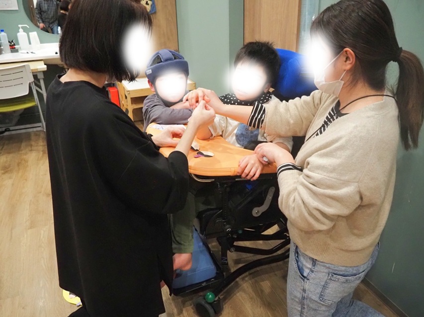 さきほど完成させたお友達はどうやら一所懸命応援しているようです。