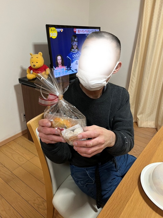 今日はバレンタインというきっかけでしたが、ちょっと照れくさそうにしたり、わざと冷静さを保ってみたり、でも嬉しさが顔に出ていたり、利用者と職員で和やかなひとときになり、少しでも思いが通じ合えたかなと思っています。