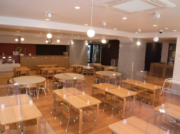 開設してから10年、いまでもとごしの杜保育園のお友達はオシャレな食堂でご飯を食べています。