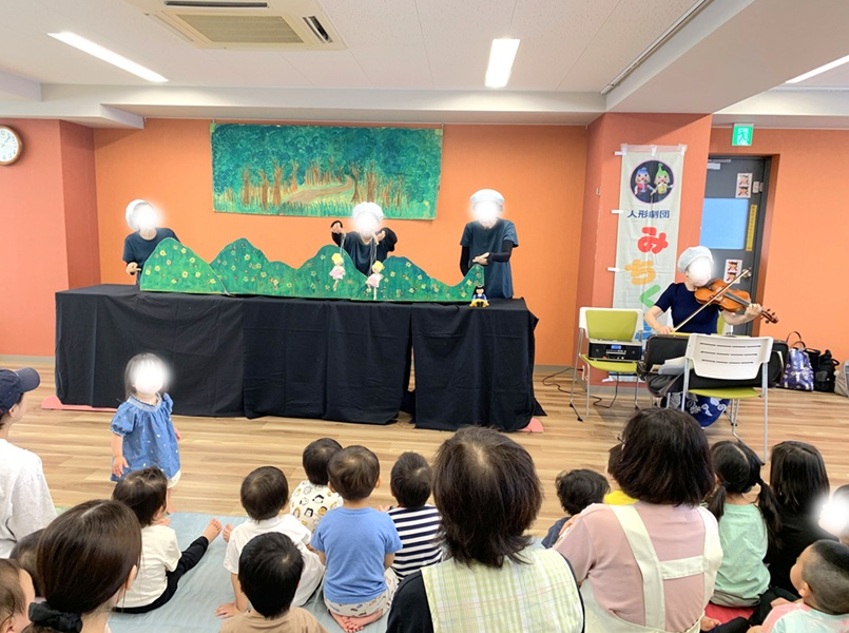 コアラの広場では定期的にイベントなどを開催していますが、今回は地域の「人形劇団みちくさ」さんにお越しいただき人形劇を披露いただきました。またこのイベントでは保育園のお友達も一緒に参加して地域の方々との交流を楽しむことができました。