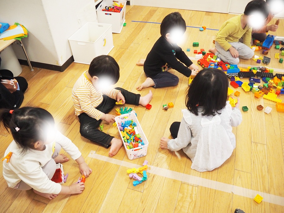 ブロックやクリップのような遊具で遊んでいました。