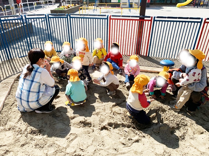 砂で遊ぶときの注意やちゃんとルールを守って遊びましょうといったお話があります。