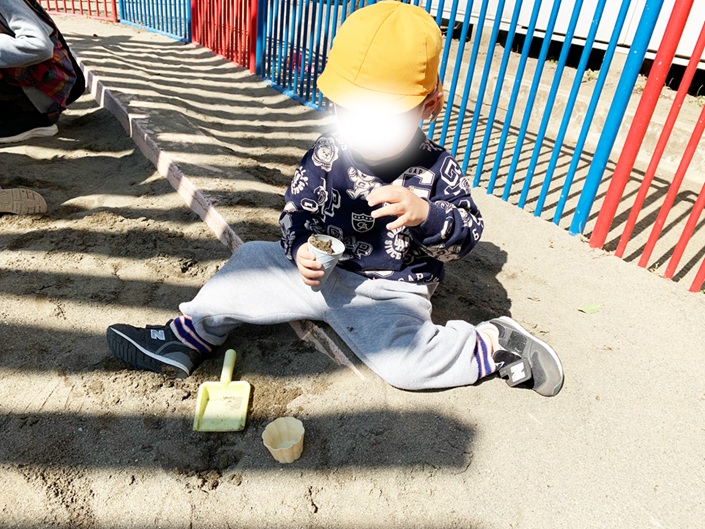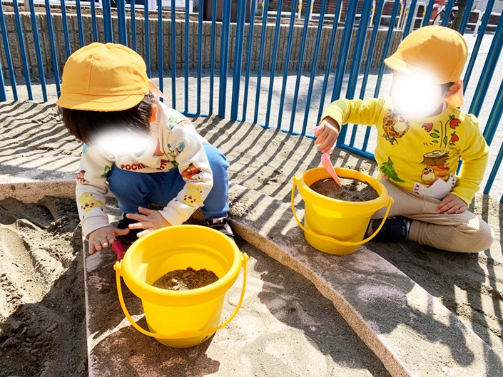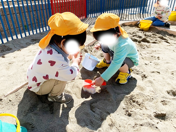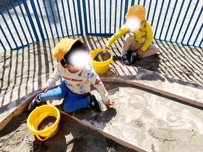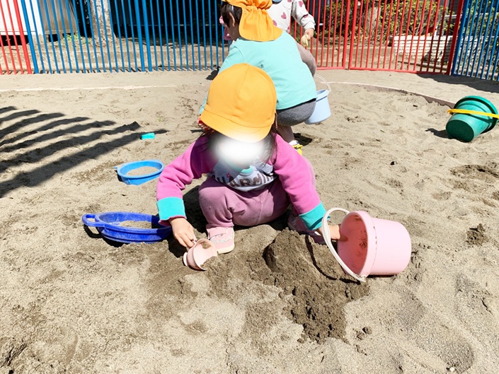 ふだん保育園にはない砂場で楽しく遊んでいますね。