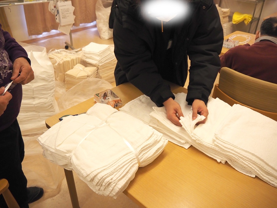 丁寧にたたまれたタオルが所狭しとおかれており、そろそろ納品時期が近いのかなと思いました。