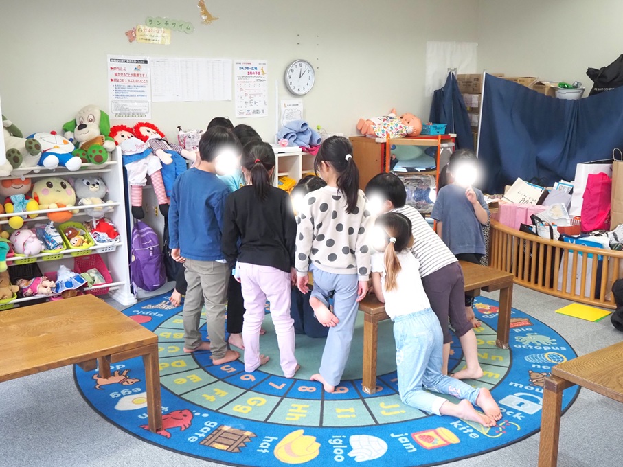 とうかいどう保育園にお伺いしたときに、ぞう組さんのお友達が4階で遊んでいました。