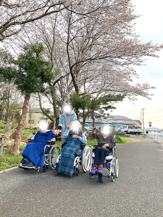 特別養護老人ホームめぐみでは、見ごろを迎えた桜の花を観に近所を散策しました。