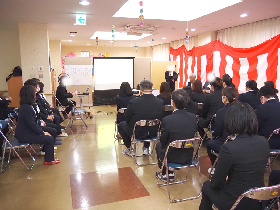 本日の入社式ではたくさんの心強い仲間をお迎えすることができ、今後も利用者の皆様に寄り添って福祉サービスを提供していこうと思いを新たにしました。