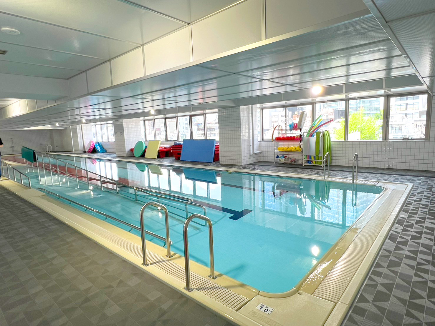 こちらは利用者が使用するプールですが、職員も福利厚生として使用することができるとのことです。